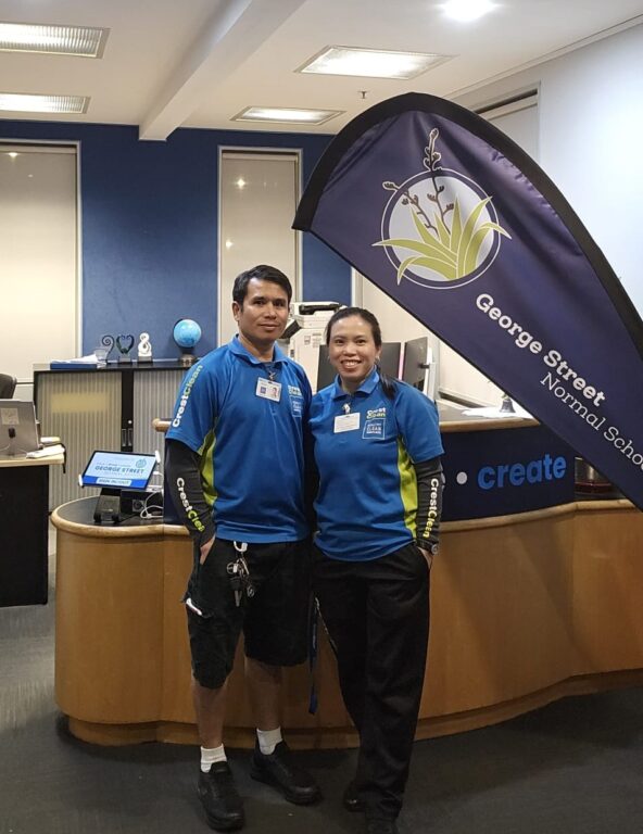 George Street Normal School is separated into two sections on opposite sides of the road, with the junior school on one side and the senior school on the other. With 450 students, it’s a large space to maintain. Despite the challenge, Leanne says George and Michelle do an exceptional job keeping the school clean.